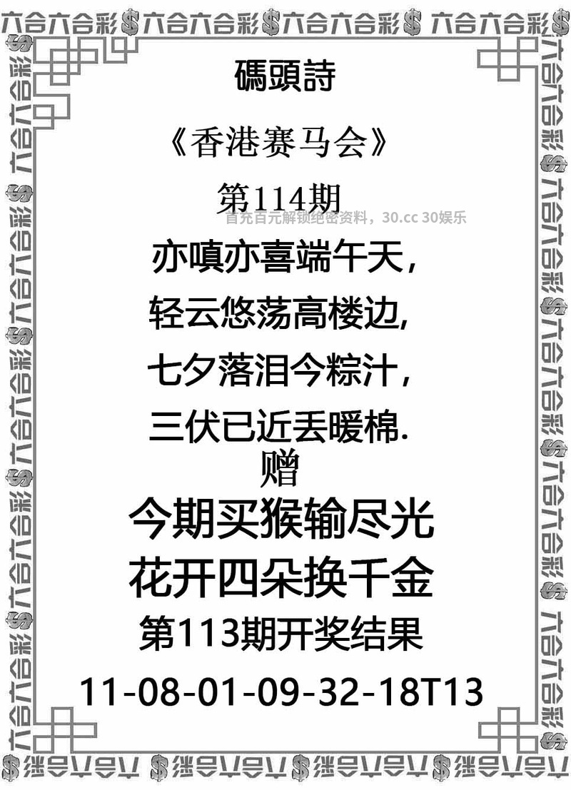 114期港彩码头诗开發00 亦嗔亦喜端午天,轻云悠荡高楼边,七夕落泪今粽汁,三伏已近丢暖棉。 综合特肖:猴虎羊马猪牛 综合主肖:猴虎羊马 综合一肖:猴